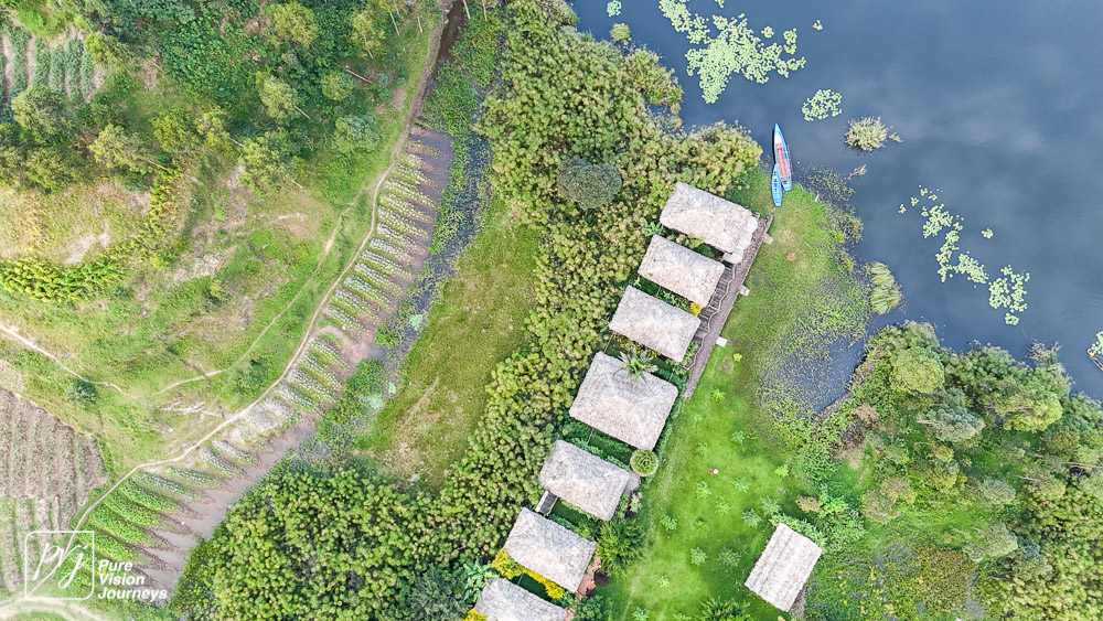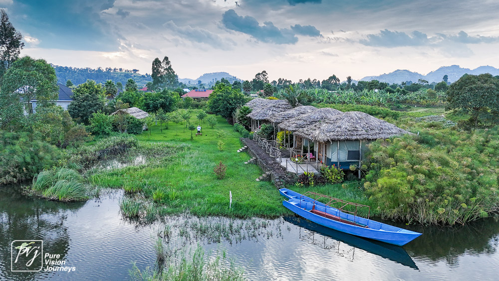 Lake Chahafi Resort is a luxurious boutique hotel, on the shore of Lake Chahafi with a spectacular view of Virunga Mountain. The resort is located near the town of Kisoro and close to Mgahinga Gorilla National Park in Uganda.