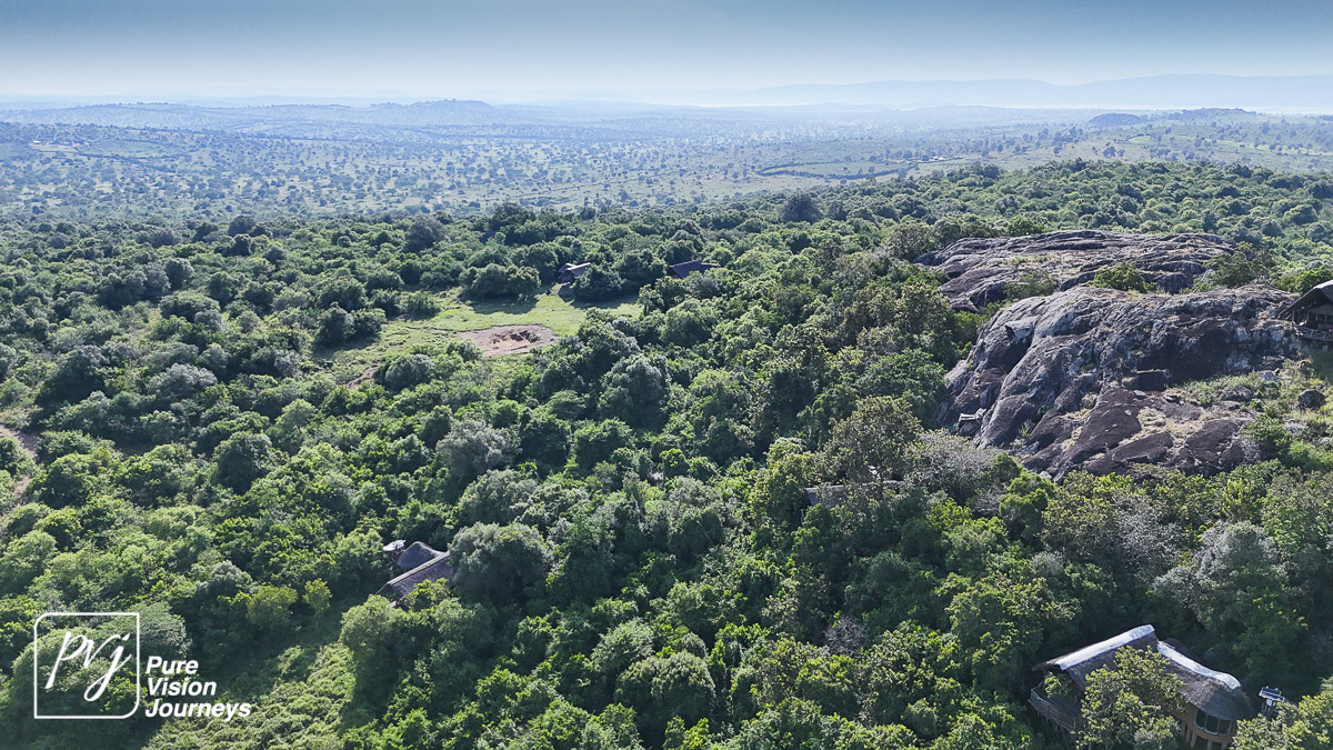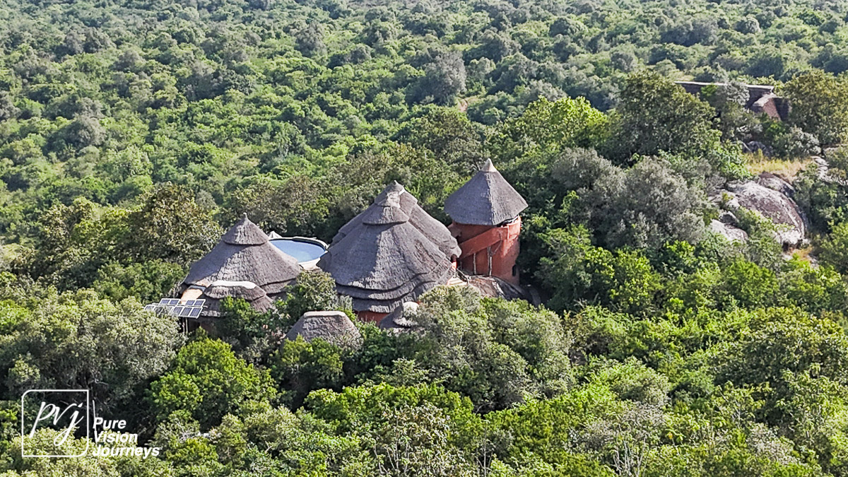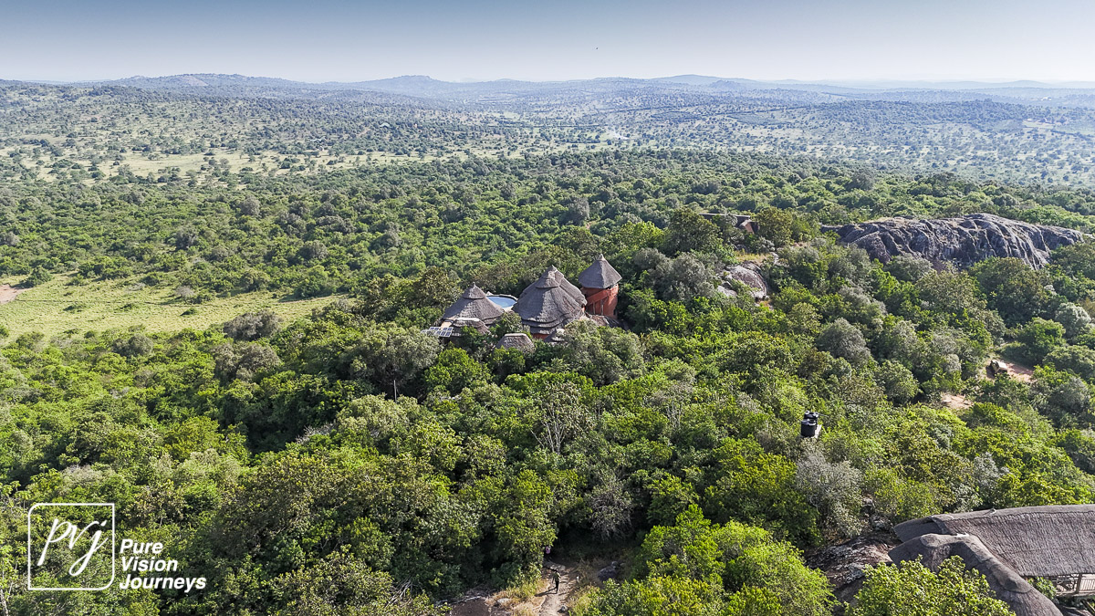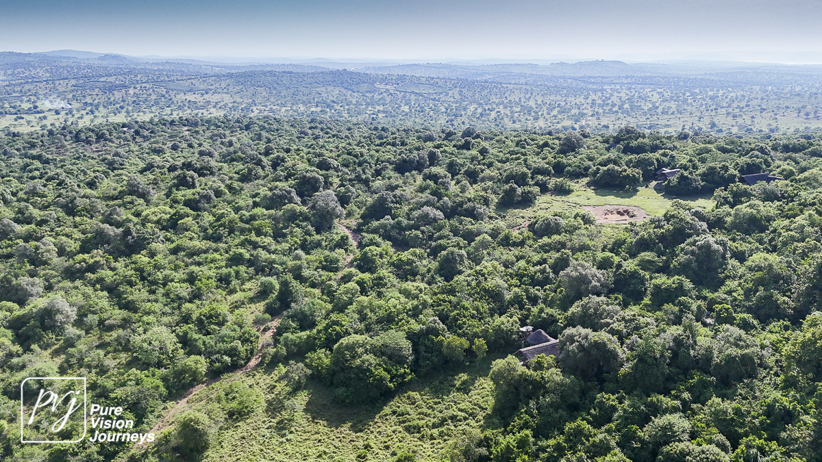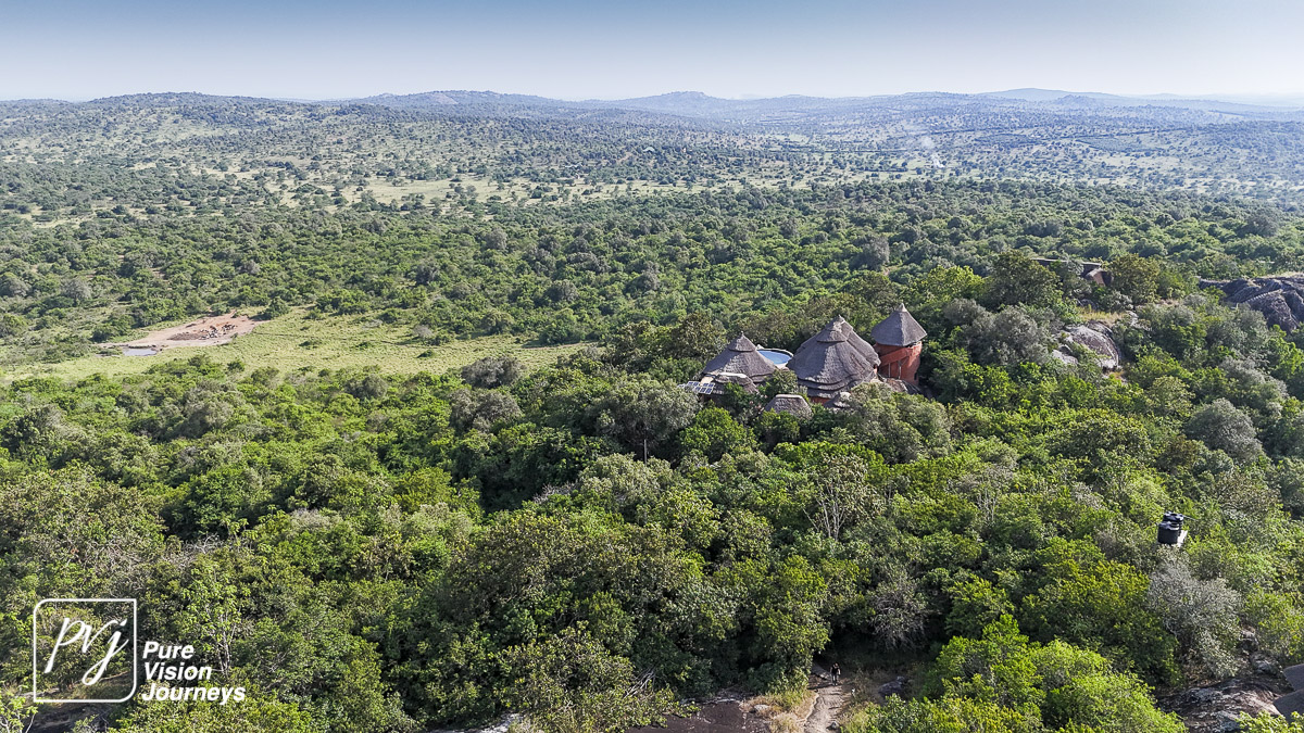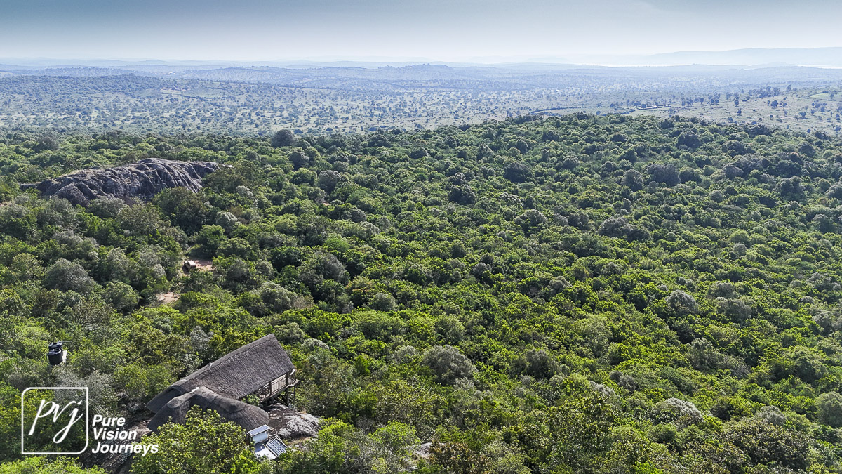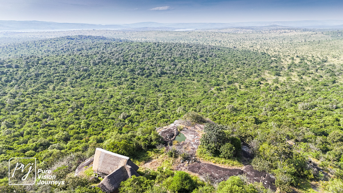 This photo gallery showcases an aerial view of Mihingo Lodge.