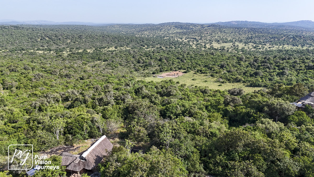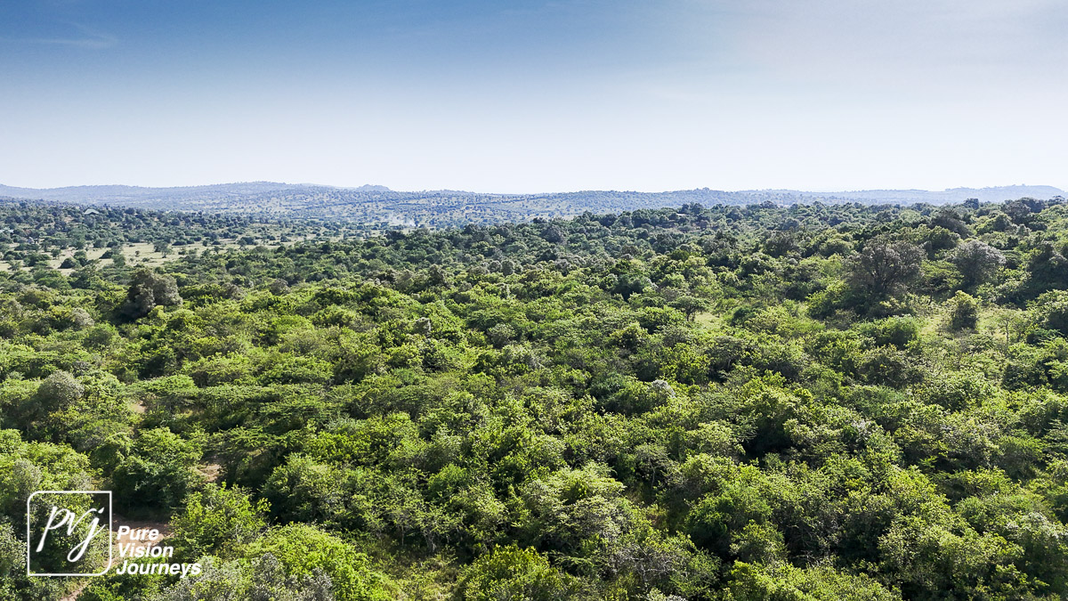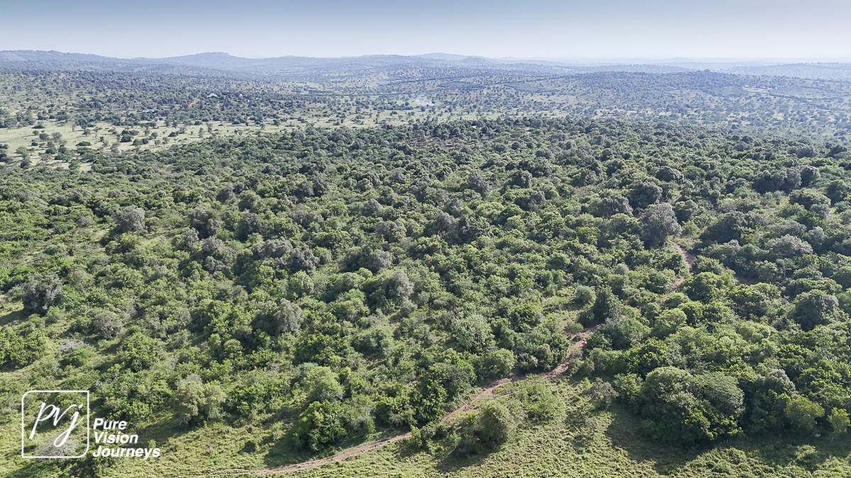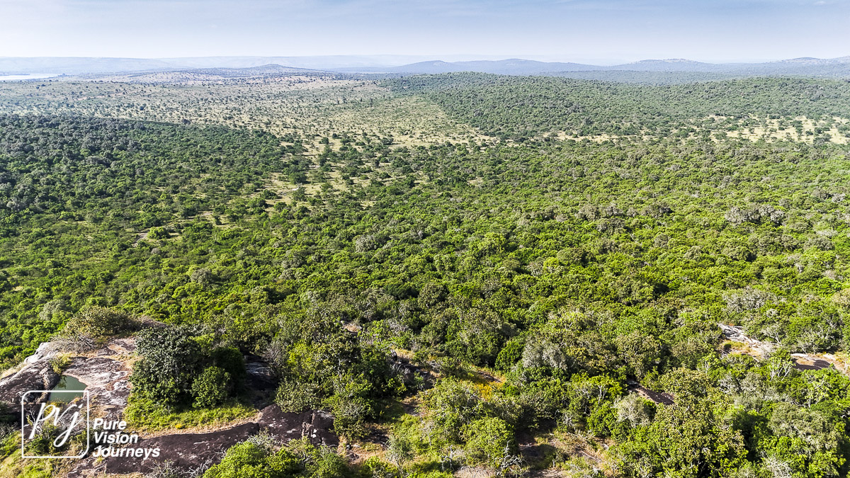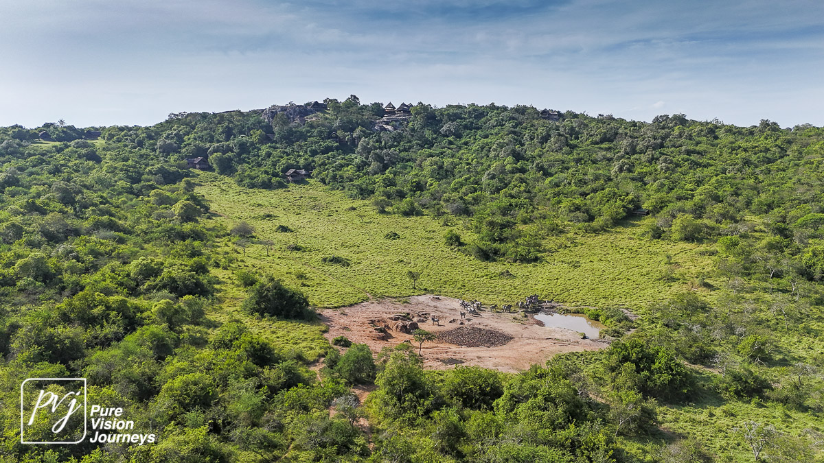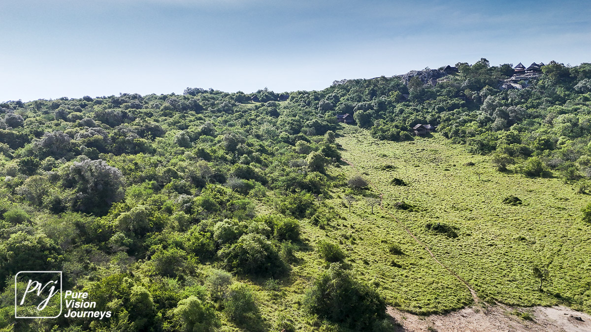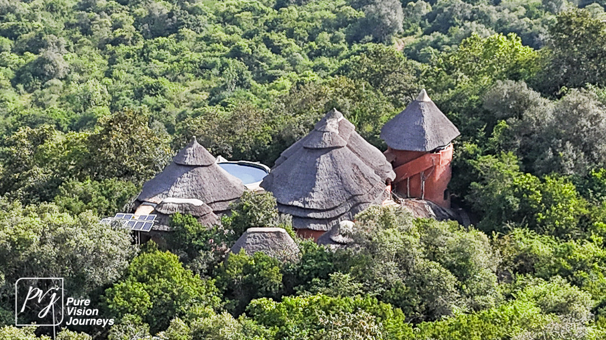 This photo gallery showcases an aerial view of Mihingo Lodge.