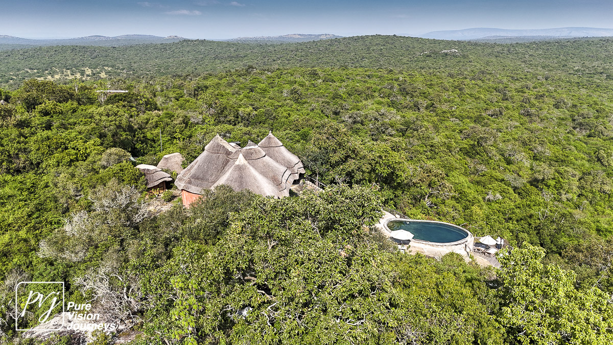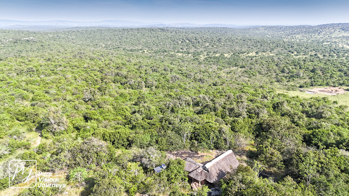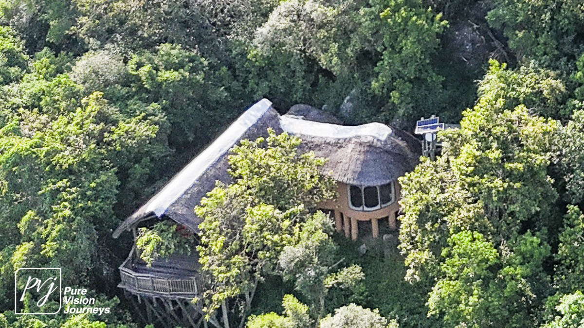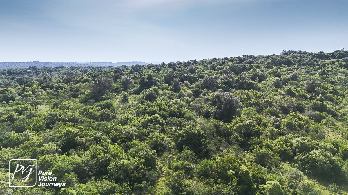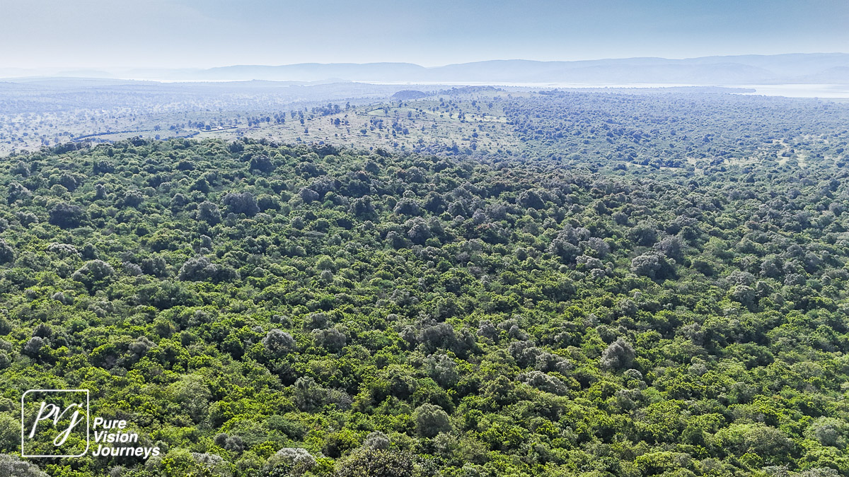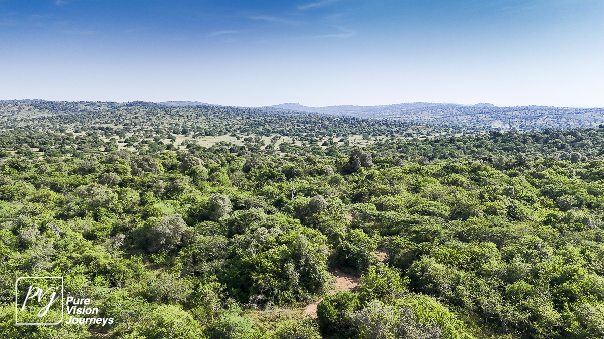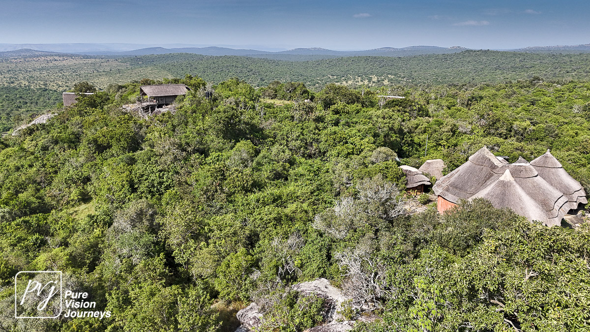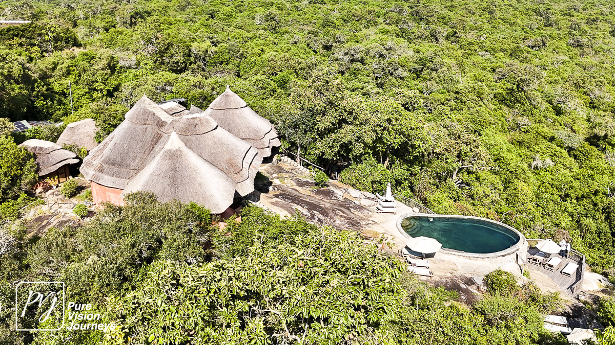 This photo gallery showcases an aerial view of Mihingo Lodge.
