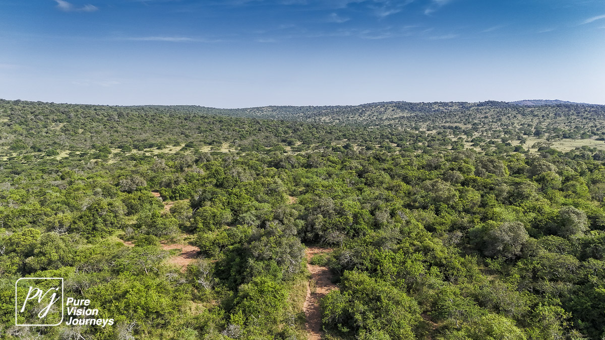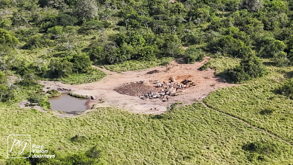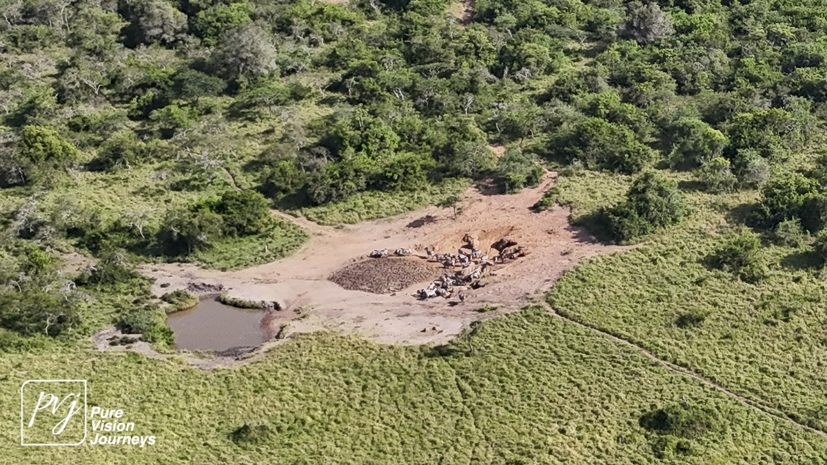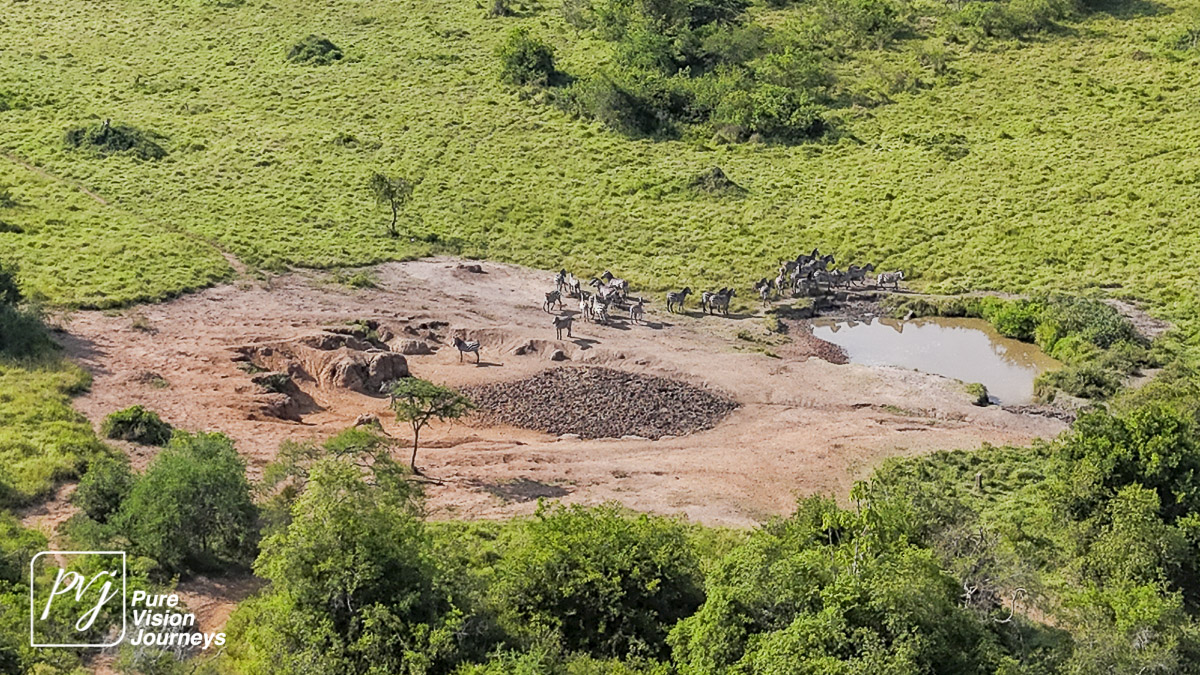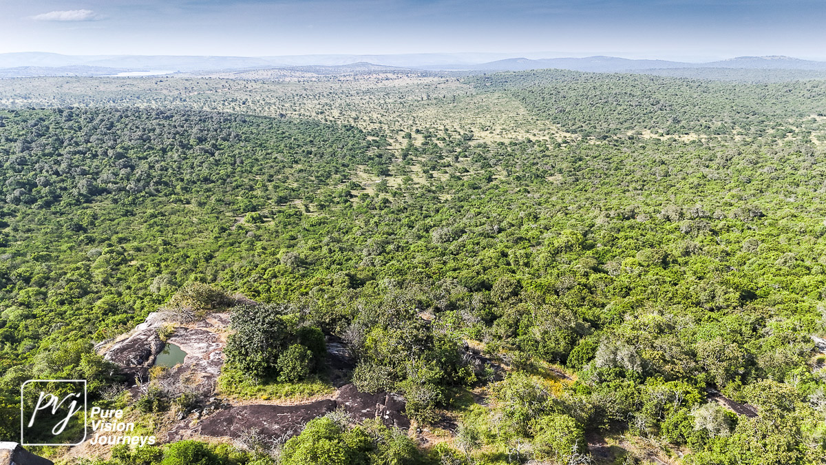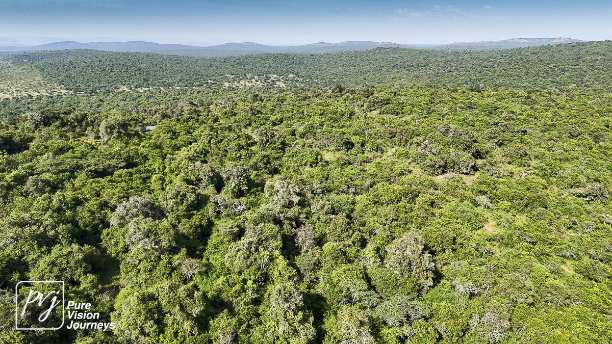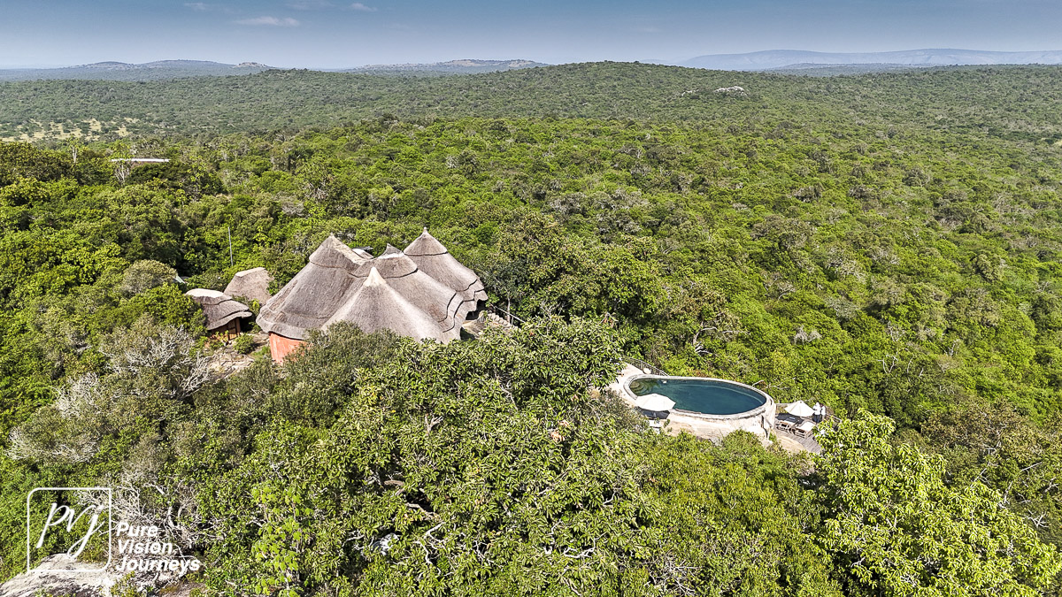 This photo gallery showcases an aerial view of Mihingo Lodge.