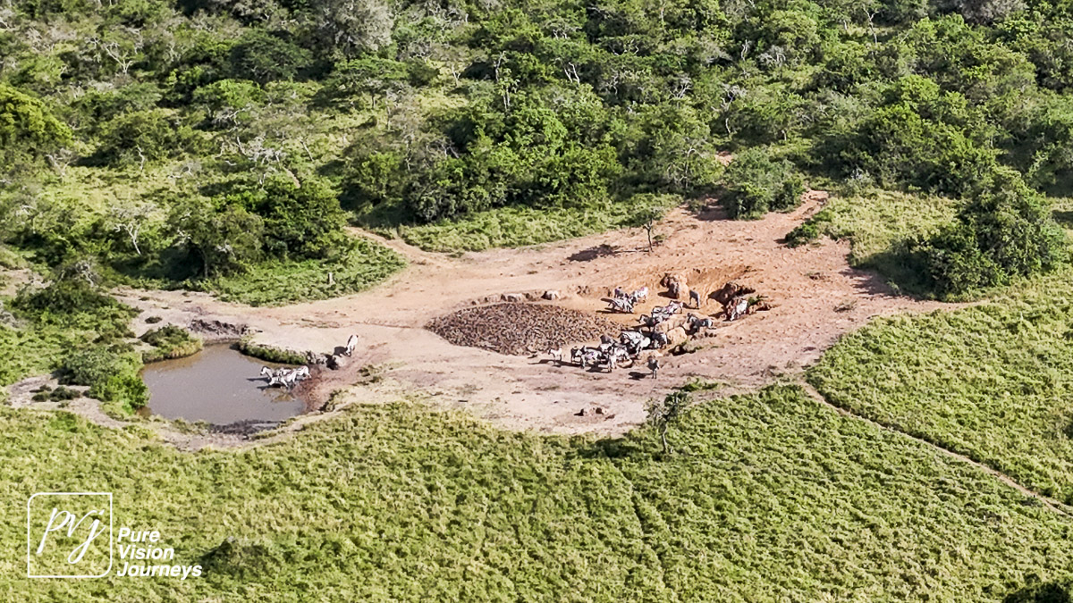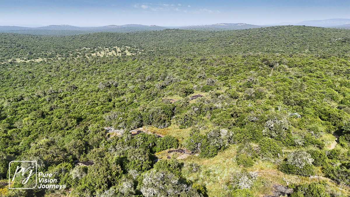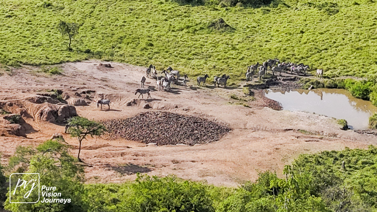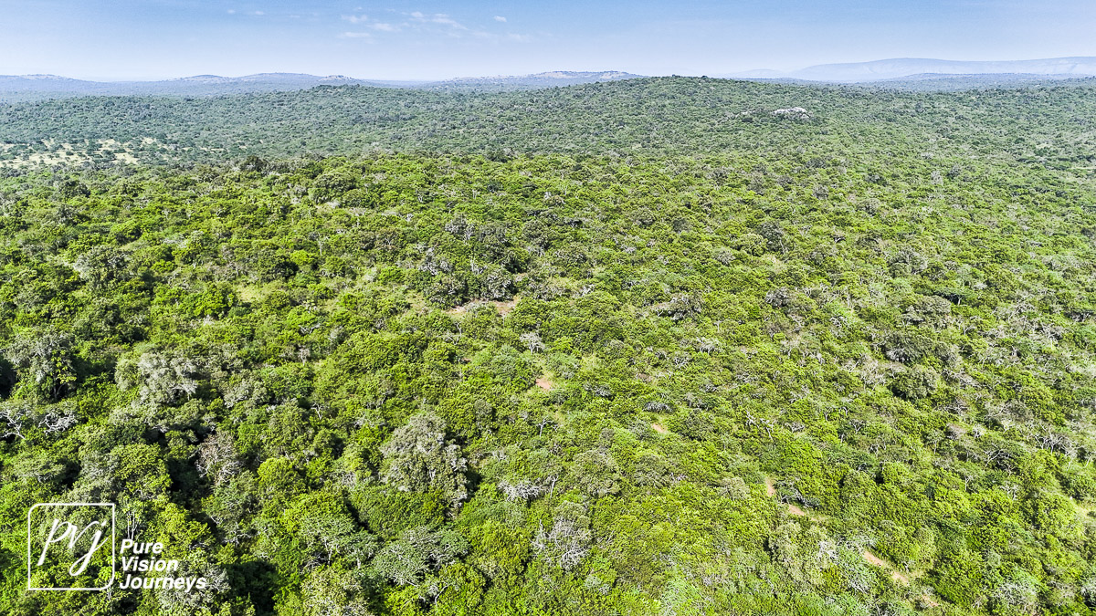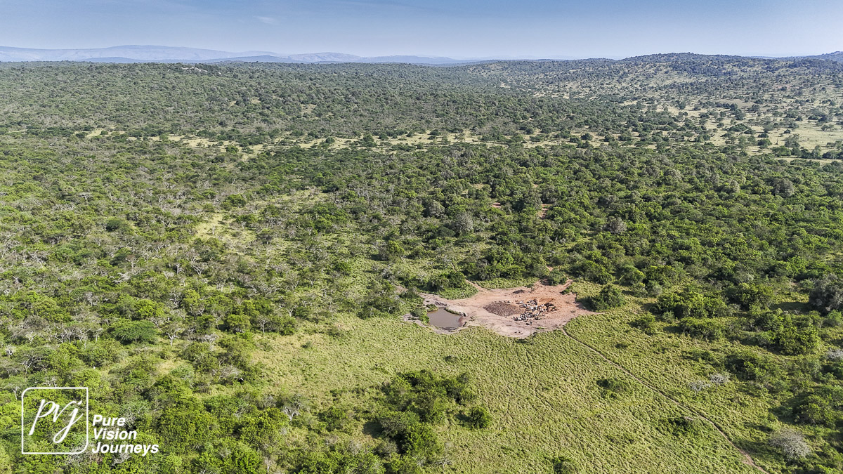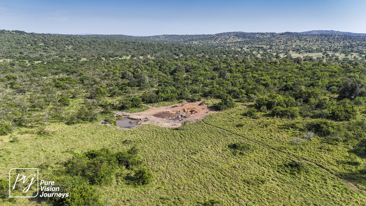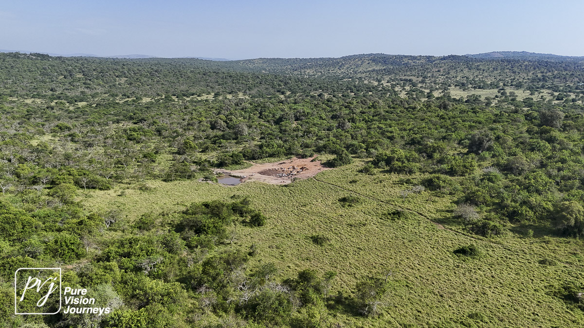 This photo gallery showcases an aerial view of Mihingo Lodge.